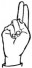 На ћирилици написано САВА ЈОВЕЉИЋ састоји се из 11 слова [?]. Исписано ћириличном једноручном азбуком за глувонеме: